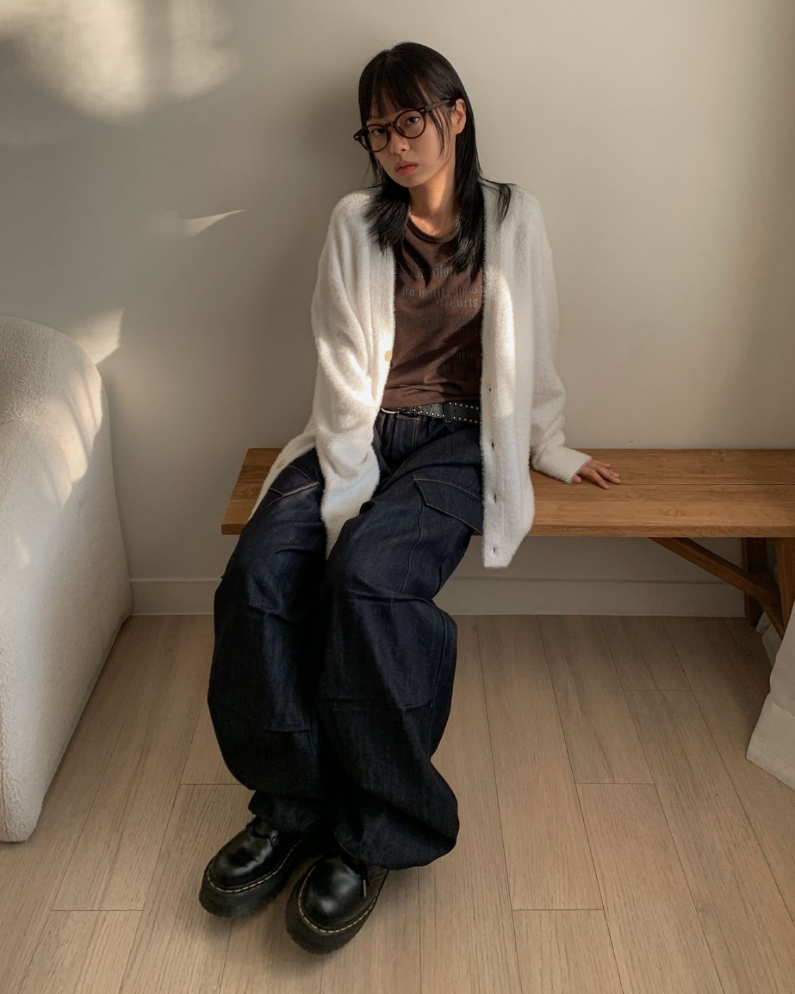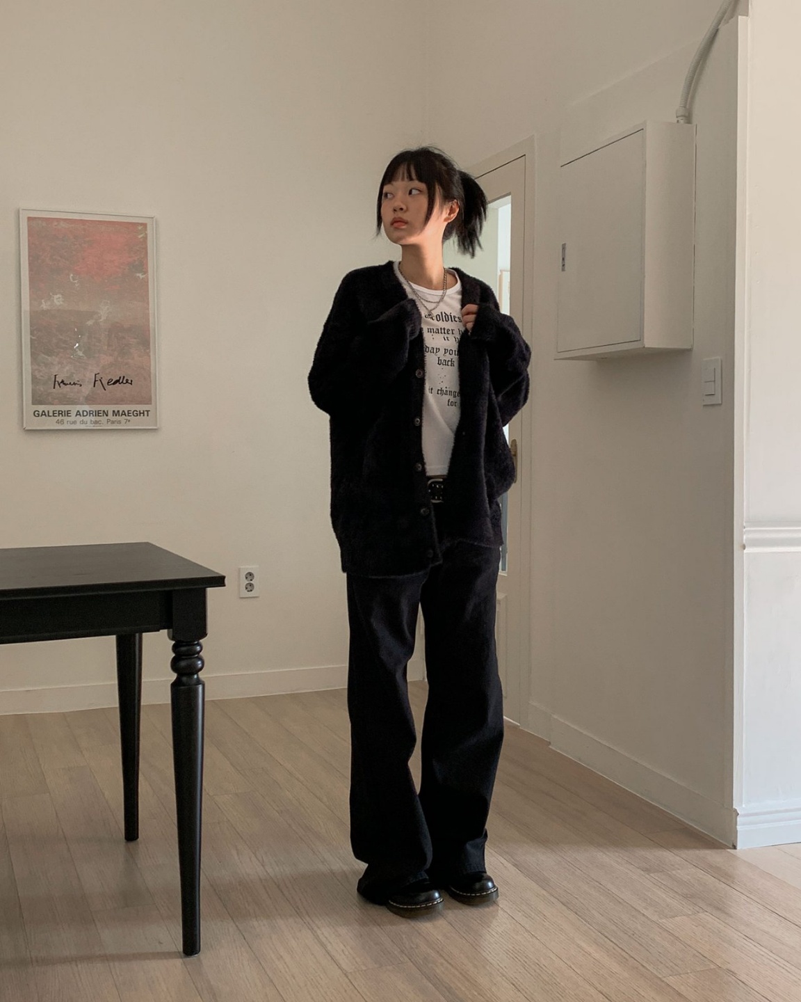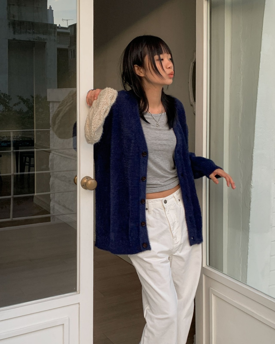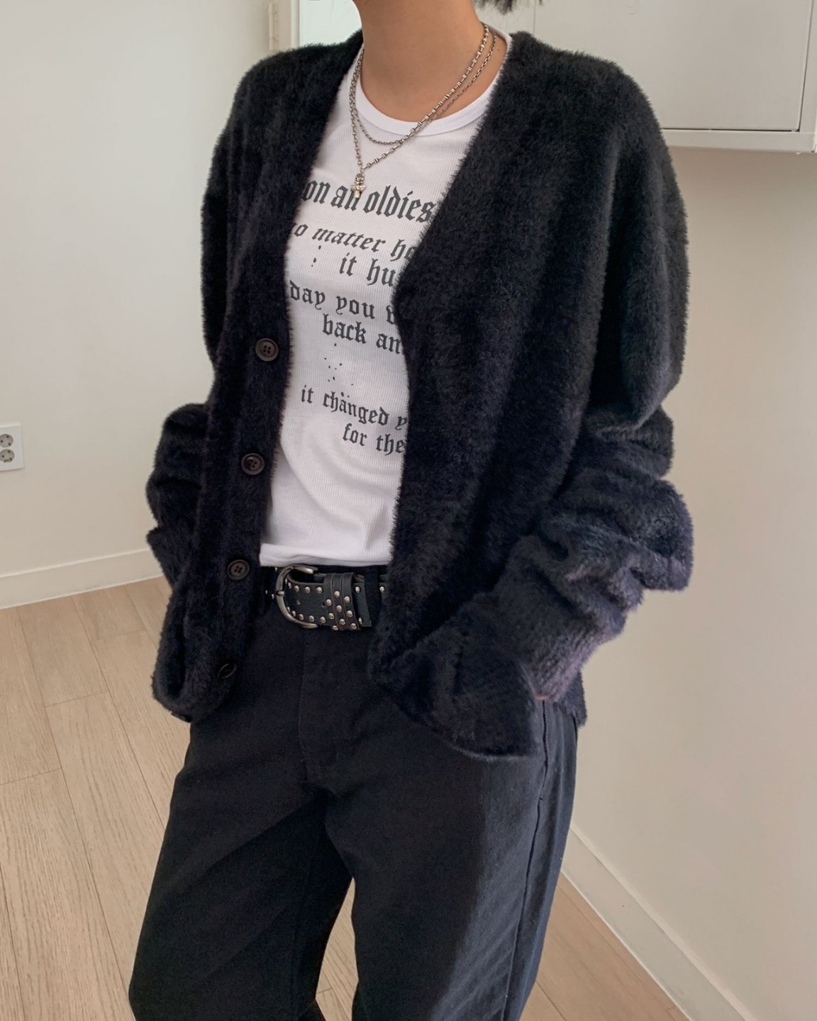 헤어 앙고라 가디건 브이넥 니트