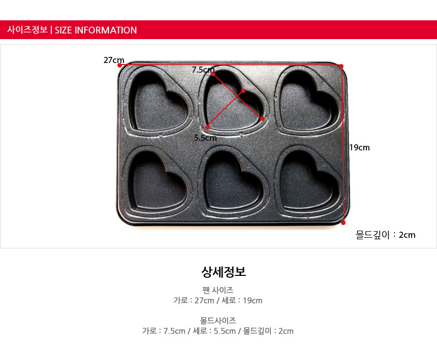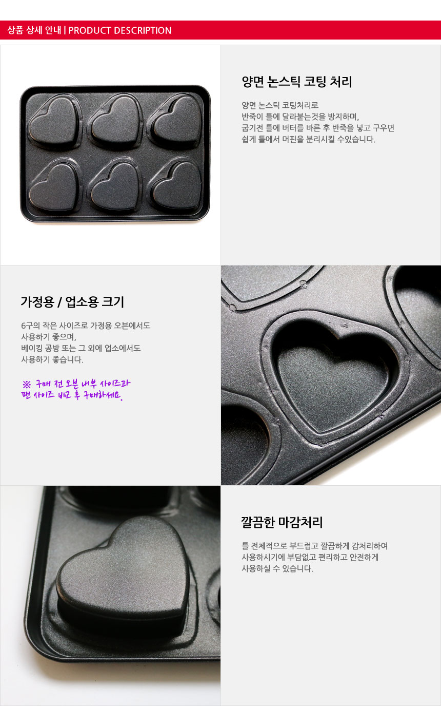 베이킹 기본 하트팬 하트6구 케이크틀 오븐팬