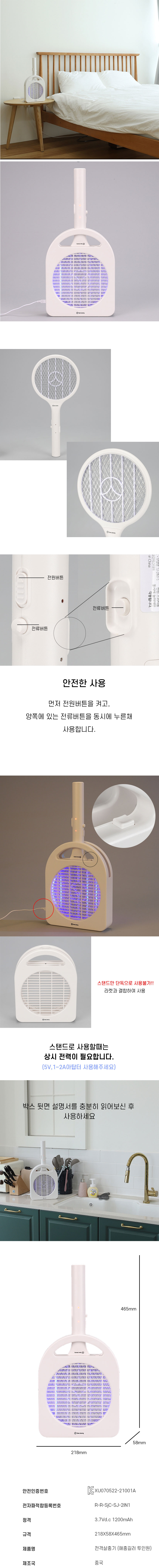 실내용 USB충전식 전기파리채 캠핑용 모기퇴치기 2in1
